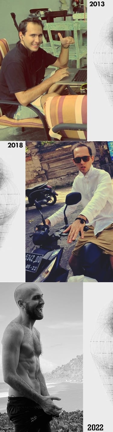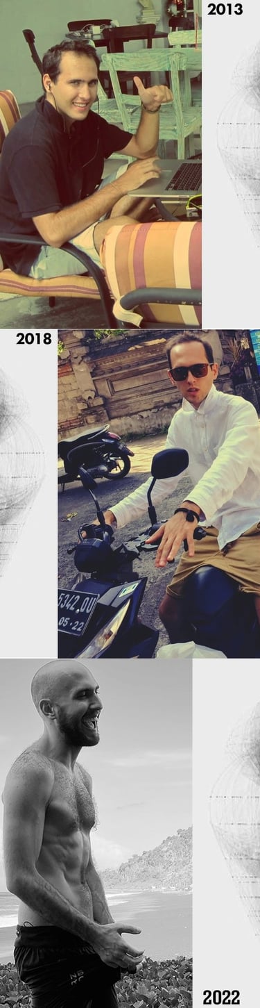 Жизнь улучшается, когда человек становится здоровее. Но, для того чтобы понять это, мне пришлось потерять всех друзей, стать иммигрантом, попробовать сигареты алкоголь, марихуану, попасть пару раз в аварии, не окончить школу, смириться и жить со сломанной челюстью, до 20 лет потреблять нездоровые продукты питания, жить без понимания как устроены законы данной игры, и вот наконец в 2012 пройти 10-дневный курс по медитации Випассана и сделать ее главной практикой в жизни, бояться остаться без жилья или нищим... пожить в более чем 15 странах, с 2013 года анализировать и экспериментировать со своим питанием, от мясоеда к сыроедению и фрукторианству.