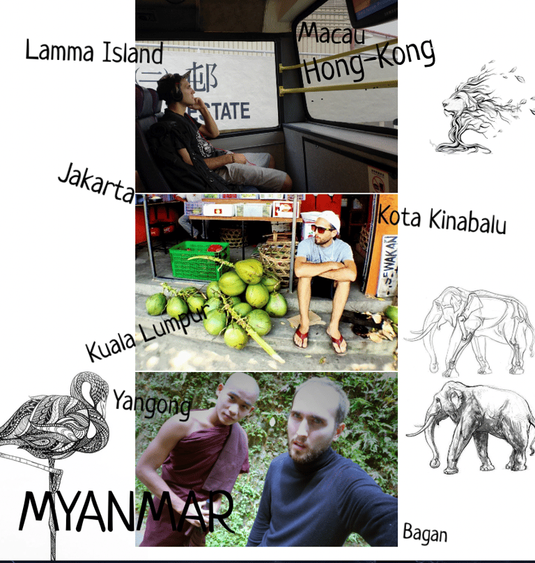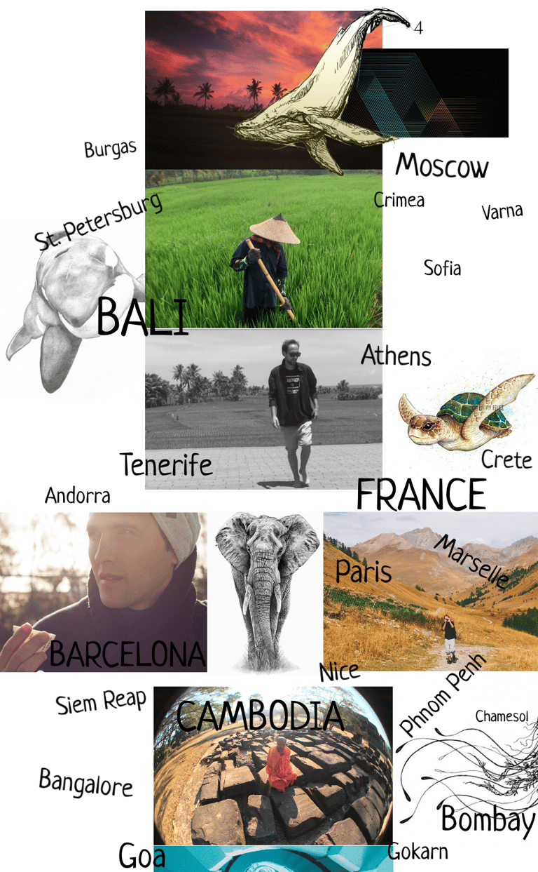 Принимать быстрые решения, различать и развивать объективное восприятие, смирение во всем хаосе движения. В 2013 году он полетел на Тенерифе (Канарские острова), далее плавно перебрался во Францию, где провел 3 месяца, изучая французский язык и культуру. Уже тогда Путь начал набирать скорость и доносить до него правила жизненного поведения. Странно, но работает, говорил он себе, мечты все-таки сбываются. После пары курсов медитации по технике випассана он был готов к переезду на Бали. Изначально отталкиваясь от дешевизны острова его встретил магический живой организм (может, рыба?), наполненный добрыми жителями, верующими в хороших и плохих богов. Еще того не подозревая, но после Бали его ждали десятки перелетов, тысячи знакомств с колоритными азиатами, туча поездов и аренда мотоциклов, невероятное количество торгов с местными, сводившихся к улыбкам (покупалось у того, кто уступал в цене), закаты-рассветы, сотни смен жилья, часы поисков здоровой еды, через призму которой можно было ощутить культуру изнутри, ситуации которые показывали мудрость и глупость, жадность и скупость, вежливость, служение, происходило много спонтанности и беспечности, как в детстве, дороги и еще раз дороги! Огромная благодарность всем тем кто всречался на пути – Людям.